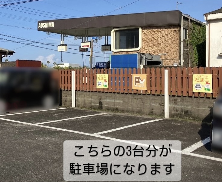 青島有料駐車場内にたまこ専用駐車場3台あります(無料)