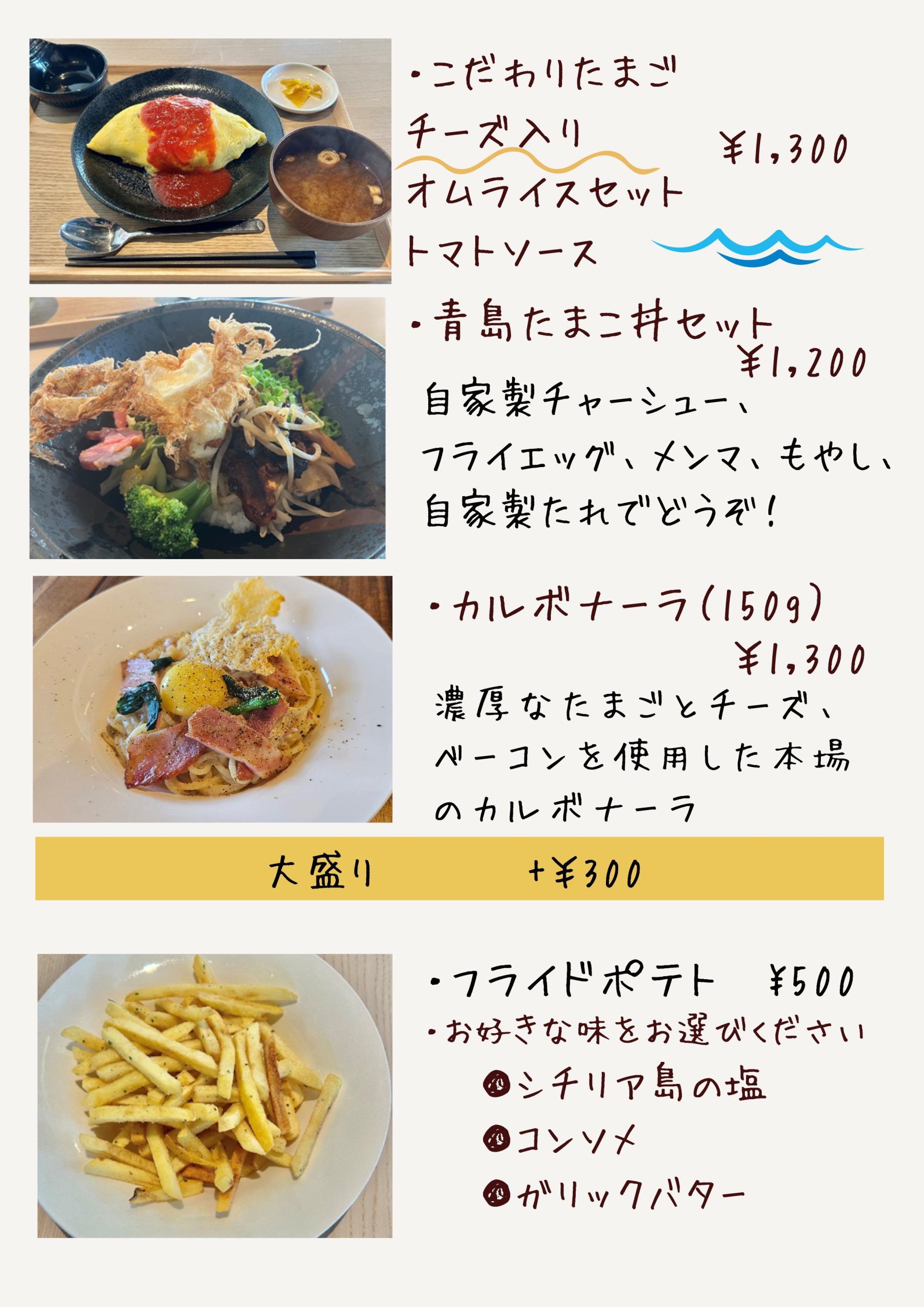 私達は、たまごにこだわり抜いた料理を通じて、青島の穏やかな空気と共にリラックスしたひと時をお届けします。