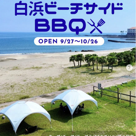 「白浜ビーチサイドBBQ」 が期間限定で白浜海水浴場海の家跡地にOPEN