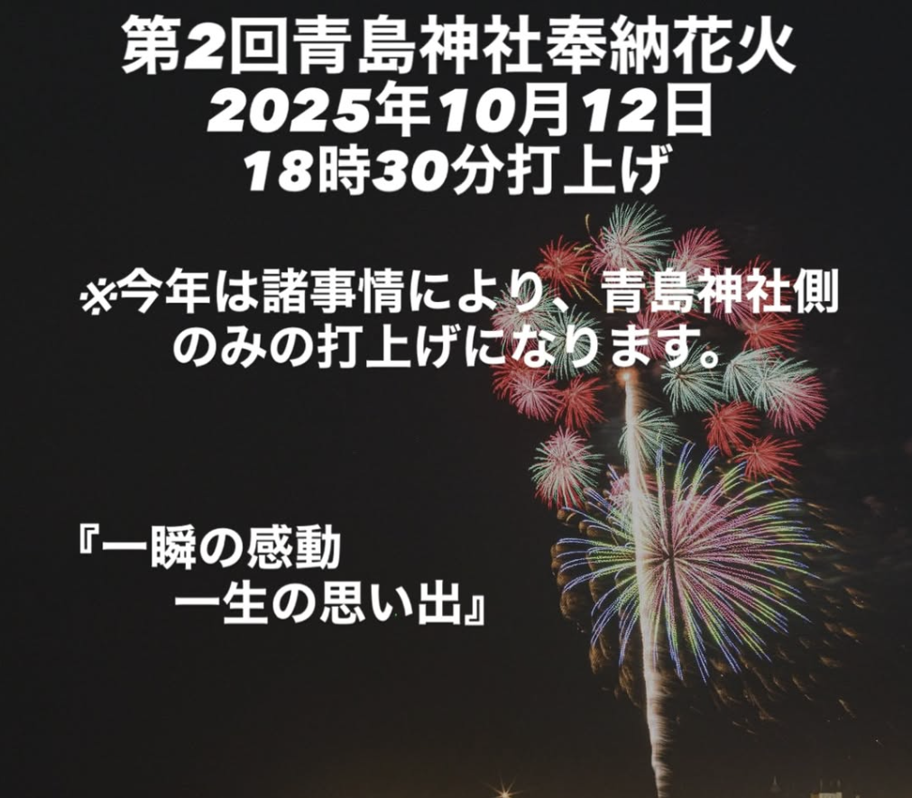 第二回青島神社奉納花火開催予定日が告知されました!