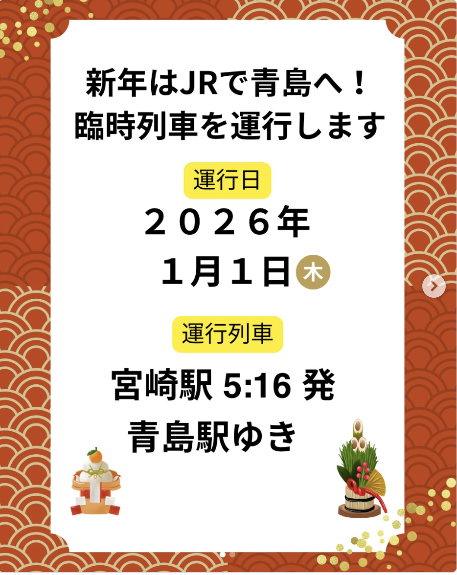 2026年1月1日(木)、初日の出鑑賞や初詣に便利な臨時列車を運行します!