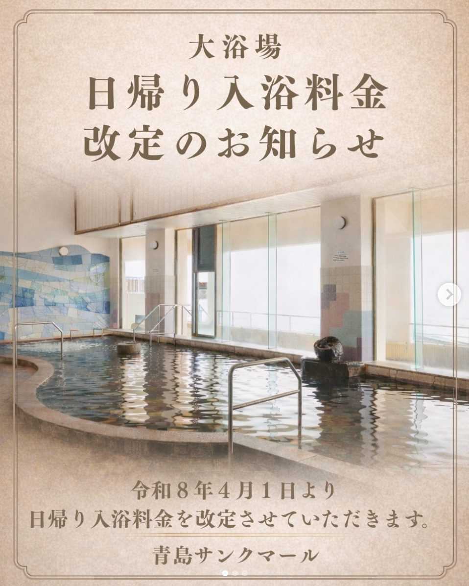 3. 【青島サンクマール】大浴場日帰り入浴料金改定のお知らせ
