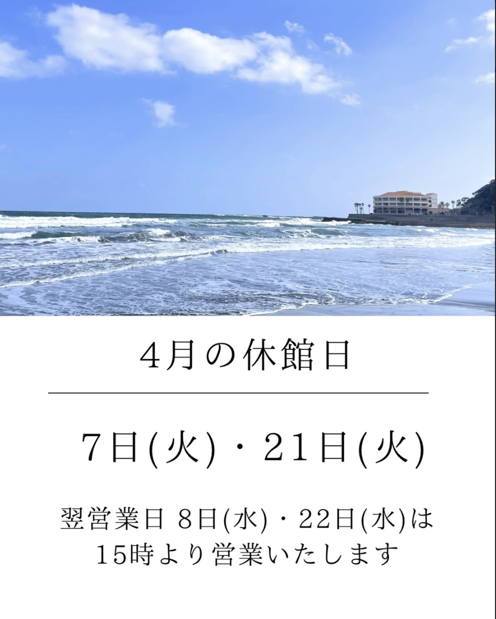 変更などのご連絡は休館日の前日までにお願いいたします。