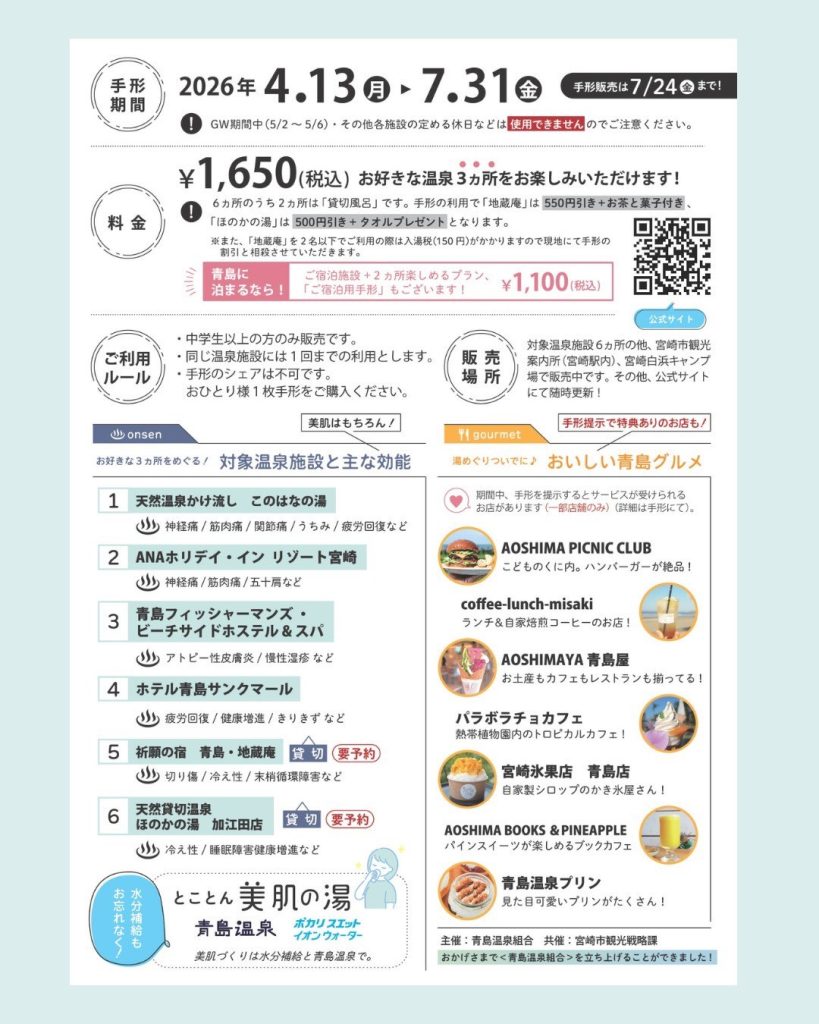 期間中、宮崎市青島エリアにある青島温泉6ヵ所のうち、