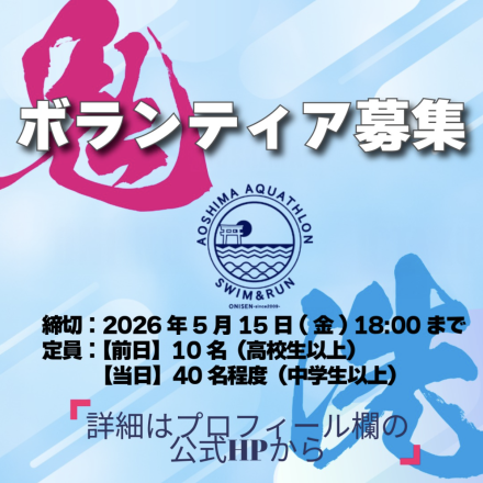 【青島 鬼の洗濯板アクアスロン大会】 ボランティアスタッフ募集!