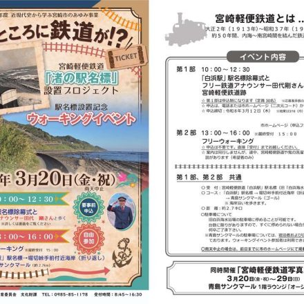 宮崎軽便鉄道「白浜駅」駅名標設置記念ウォーキングイベントのお知らせ