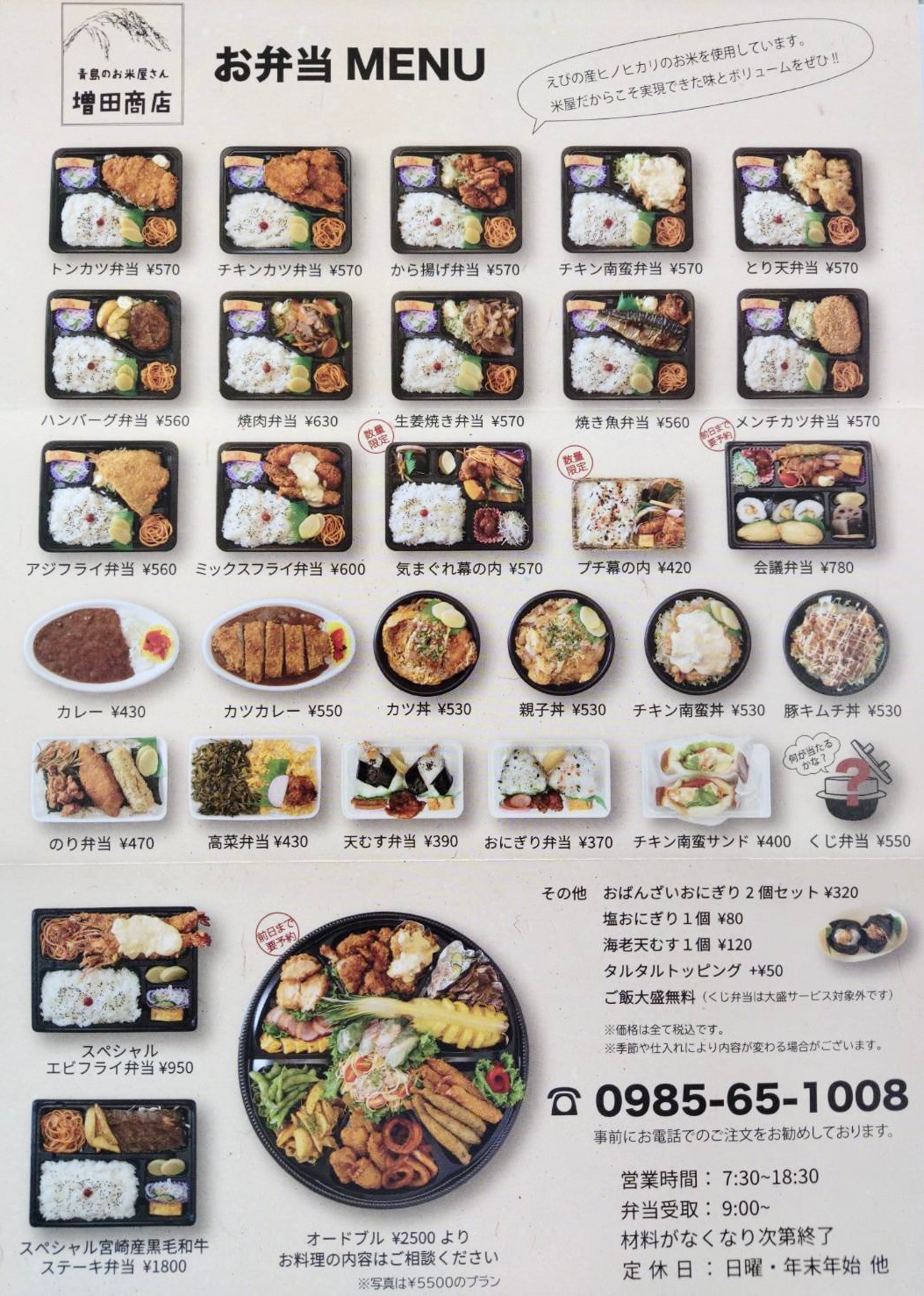 お店7:00-18:30 お弁当9:00-材料なくなり次第